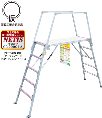 従来の可搬式作業台にセーフティガードを組み合わせることにより、さらに安全性に考慮した製品をつくりました。墜落防止対策・設置収納も素早い技術として、国土交通省新技術情報提供システム「NETIS」に登録されています。