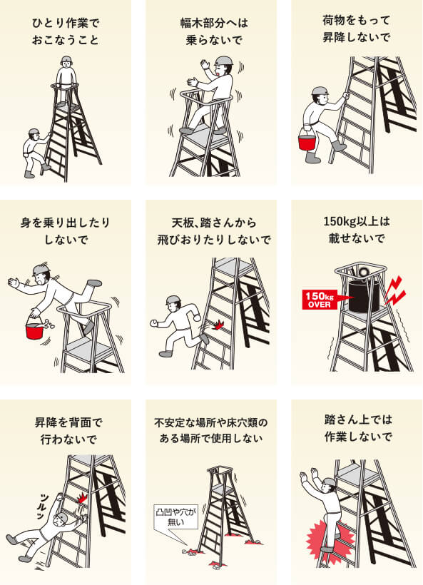 - 脚立の使用上の主な注意事項